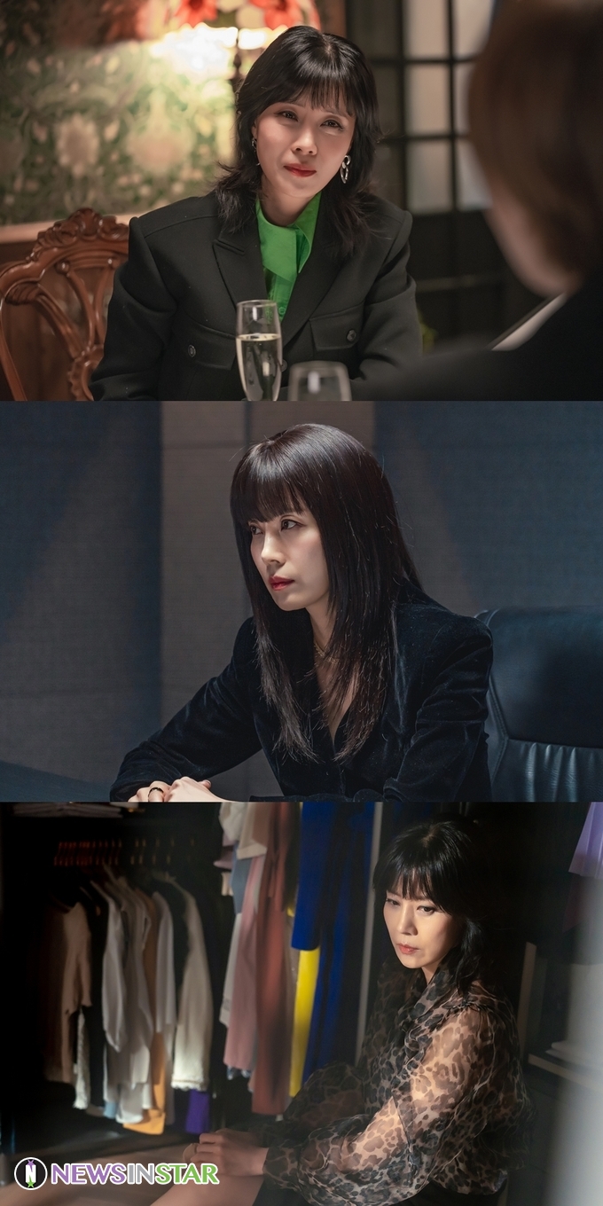 원하는 건 다 손에 넣어야 직성이 풀리는 집념의 소유자 윤해미는 단호한 표정과 날선 눈빛으로 분위기를 압도한다.