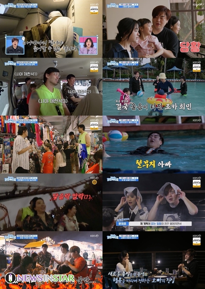 이어 문희준-소율 부부가 바통을 이어받았다. 오랜만의 KBS 예능 나들이 소감을 묻는 MC 이유리에게 문희준은 “장난 아니었다”라며 의미심장한 웃음을 지어 만만치 않은 환장 여행을 예상하게 했다. 훌쩍 큰 잼잼이 희율의 모습에 반가움이 2배가 됐고, 문희준 가족의 여행 메이트가 된 문희준의 동생 문혜리와 두 자녀 희아, 희민까지 공항에서 완전체가 된 잼잼 패밀리. 소율은 시누이 문혜리 가족과의 여행에 걱정이 앞서 “나 빼고 갔다 와”라며 시작 전부터 여행 포기를 선언했지만, 비행기를 타고 떠날 것을 기대하는 희율의 모습에 걱정을 멈추고 본격 괌 여행에 나섰다.