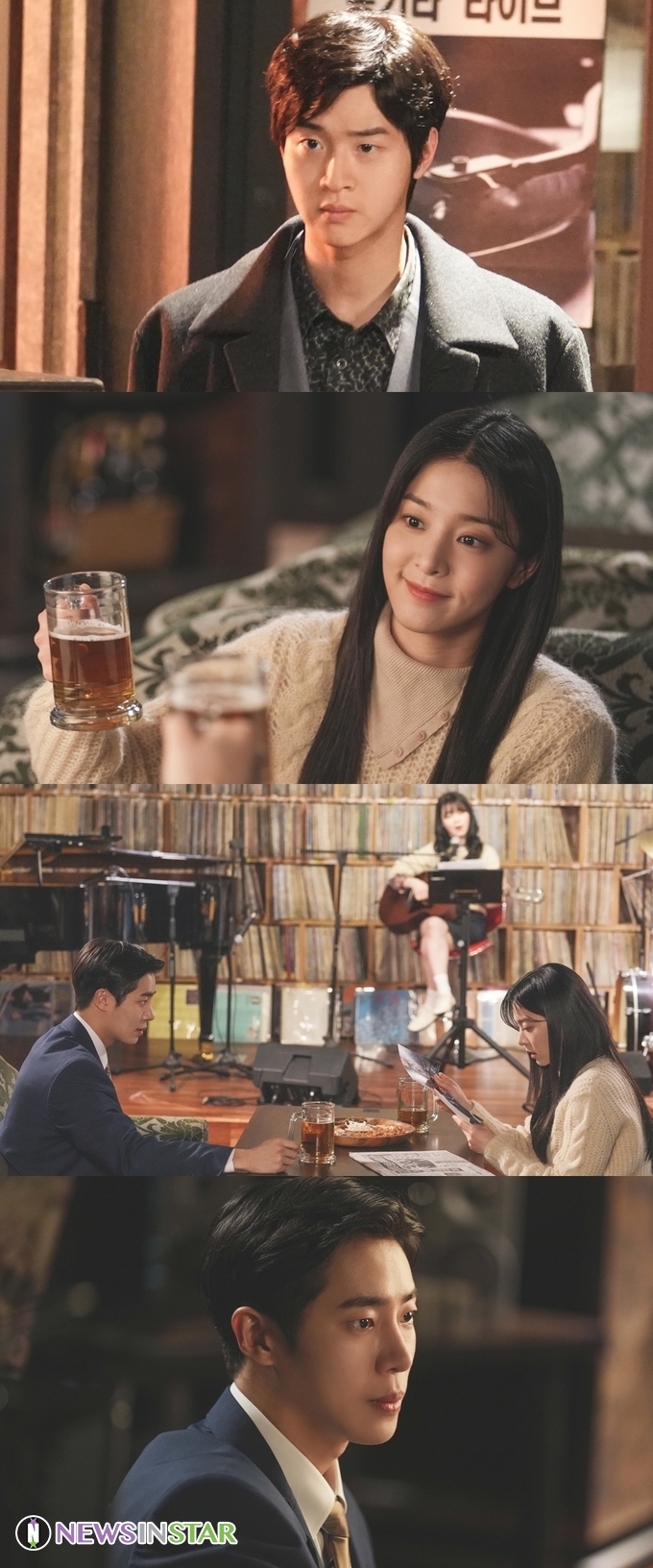 공개된 사진 속에는 함양자(현승희 분)의 통기타 카페에 들어오는 두학의 모습이 담겼다. 카페 안에서 못 볼 것이라도 본 듯 두학의 얼굴엔 불편한 기운이 흐른다. 또 다른 사진엔 생맥주잔을 들고 건배하는 정신의 모습이 포착됐다. 그의 맞은 편에는 철웅이 앉아 있어 두 사람이 만난 이유에 관심이 쏠린다.
