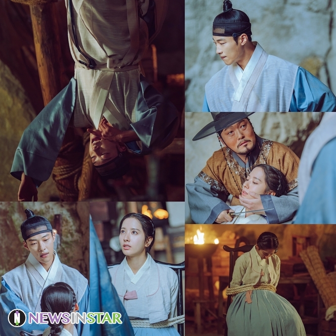 29일(오늘) 공개된 스틸에는 포박된 채 거꾸로 매달린 강한수와 기절해 있는 이연주의 모습이 담겨 있다. 더불어 이연주의 목에 칼을 겨눈 장대방(이준혁 분)의 모습까지 등골을 오싹하게 만드는 살벌한 긴장감을 조성한다.