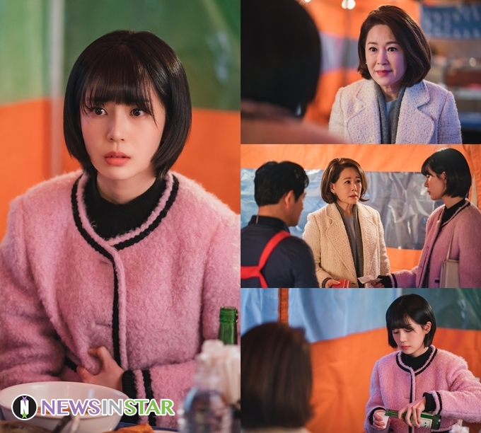 특히 혼전임신을 한 오연두가 소주잔에 소주를 따르고 있는 모습도 눈길을 끈다. 급기야 오연두는 배를 붙잡고 울기 직전의 표정으로 이인옥을 바라보고 있는데, 오연두의 굳어진 표정에서 상황의 심각성을 느끼게 한다. 이와 반면 공태경(안재현 분)의 엄마 이인옥은 환한 표정으로 그녀를 바라보고 있어 상반된 표정은 무엇을 의미하는지 궁금증 또한 유발한다.