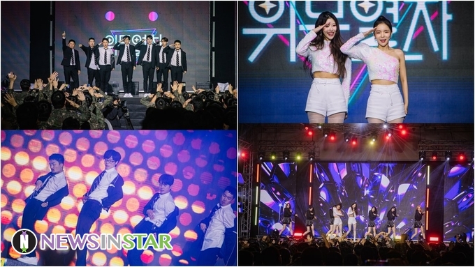 공개된 사진 속에는 군부대를 발칵 뒤집은 원탑과 주주 시크릿의 모습이 담겨 있어 눈길을 끈다. 특히 원탑은 사람들 앞에서 공연을 하는 것이 이번이 처음. 그것도 국군 장병들 앞에서 첫 무대를 선보이게 됐다. 보이그룹의 필수 무대 의상 교복을 맞춰 입고 ‘To You(투유)’ 군무를 추고 있는 원탑의 모습에 과연 국군 장병들은 어떤 반응을 보일지 관심이 집중된다.
