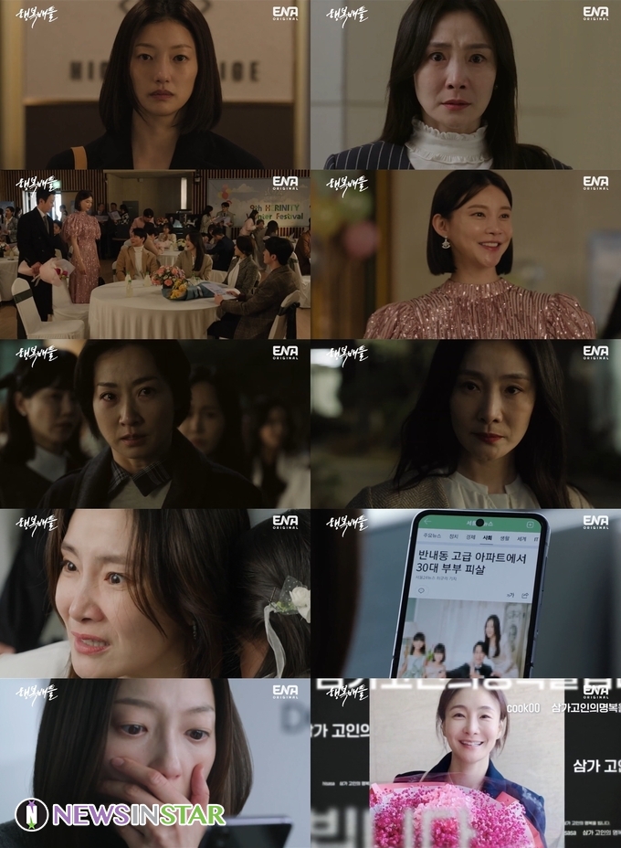 6월 1일 방송된 ENA 수목드라마 ‘행복배틀’(연출 김윤철/극본 주영하/기획 KT스튜디오지니/제작 HB엔터테인먼트) 2회에서는 방송 전부터 궁금증을 자아내던 포스터 속 문구 ‘누가 그녀를 죽였을까’의 ‘그녀’가 오유진(박효주 분)임이 밝혀졌다. 이와 함께 오유진이 다른 엄마들의 비밀을 판도라의 상자에 모으고 있었다는 것이 알려져 ‘누가’ 사건의 범인인지 궁금증을 더했다.