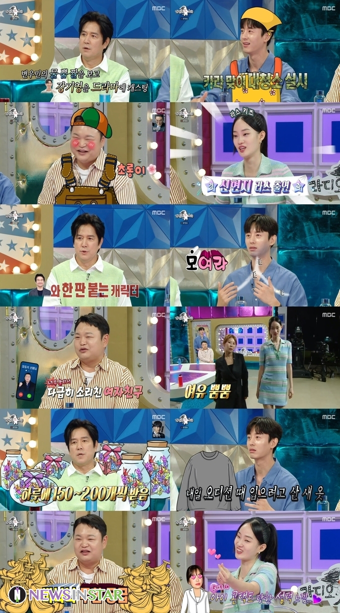 변우민은 ‘라스’ 레전드 짤로 회자 중인 ‘물 뿜 짤’을 생성한 이후 국내외 광고를 포함해 100군데 이상에서 섭외 연락을 받았다고 셀프자랑을 했다. 이를 듣던 ‘라스’ MC들은 변우민의 허풍(?)에 믿기지 않는 반응을 보여 웃음을 안겼다. 이에 굴하지 않고 변우민은 ‘물 뿜 짤’의 또 다른 당사자 배우 강기영이 짤 덕분에 드라마 ‘이상한 변호사 우영우’ 감독의 눈에 들었다고 설명해 모두를 깜놀하게 했다.
