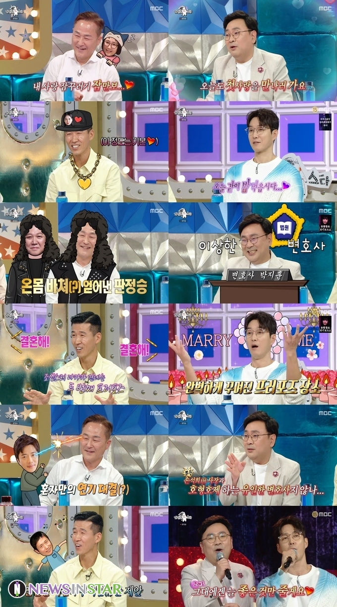 맛깔나는 입담으로 각종 교양 시사 프로그램을 섭렵 중인 이혼 전문 변호사 박지훈은 예능감이 폭발하는 토크로 존재감을 뽐냈다. 사랑꾼 특집에 맞냐는 MC들의 의구심에 “첫사랑과 결혼해서 같이 살고 있다”라며 사랑꾼 에피소드를 대방출하는 등 셀프 어필해 웃음을 안겼다. 또 그는 고시생 시절 친구들이 알려준 아이디어를 모아 아내에게 프러포즈했으나 연달아 실수를 하는 바람에 위기를 맞이할 뻔했다고 고백해 웃음을 안겼다.