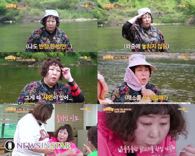 ‘다슬기 20kg 채취하기’ 미션을 부여받은 아마 일꾼러 4인방은 작업반장을 뽑기 위해 물속 선착순 달리기 시합에 나섰다. 신기루는 작업반장이 된 풍자가 코끼리라고 부르자, 바로 코끼리코를 하는 순발력 넘치는 센스를 발휘했다.