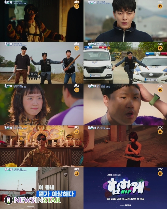 오는 8월 12일 첫 방송되는 JTBC 새 토일드라마 ‘힙하게’(연출 김석윤·최보윤, 극본 이남규·오보현·김다희, 제작 스튜디오 피닉스·SLL) 측은 13일, 서울에서 좌천된 열혈 형사 문장열(이민기 분)의 수상한 농촌마을 좌충우돌 적응기가 담긴 2차 티저 영상을 공개했다.