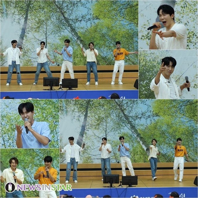 무엇보다 ‘장필무’ 멤버들이 응축했던 뜨거운 에너지를 아낌없이 분출한 컴백 첫 촬영 현장이 포착돼 이목을 집중시킨다. ‘신에손’ 손태진-신성-에녹과 ‘막내 라인’ 민수현-김중연이 캐주얼한 셔츠에 화이트&블루진을 매치한 ‘청량 100% 패션’을 맞춰 입은 채 일렬로 서서 ‘폼나게 살거야’를 열창하고 있는 것.