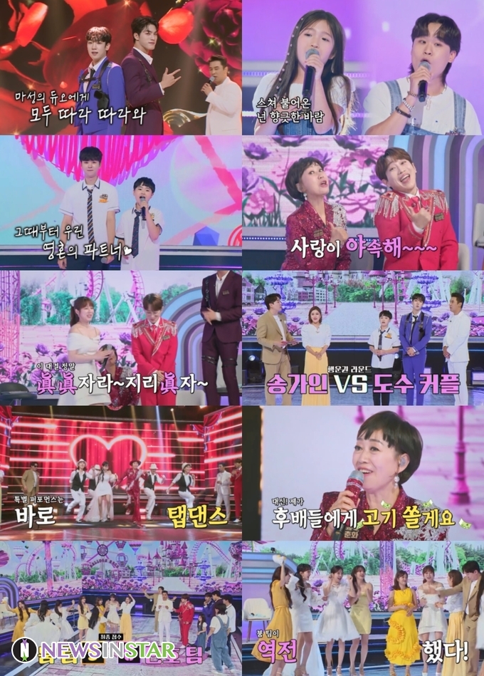 이날 하춘화X안성훈, 김유하X김동현, 윤준협X최수호, 송도현X송민준은 하춘화의 ‘날 버린 남자’, 아이유&김창완의 ‘너의 의미’, 김희재의 ‘따라따라와’, 남진의 ‘파트너’를 부르면서 신나게 ‘화밤’의 문을 열었다. 웃음을 유발한 데칼코마니 비주얼부터 여심을 사로잡는 섹시 퍼포먼스까지 시작과 동시에 ‘화밤’ 스튜디오 분위기를 후끈하게 달궜다.