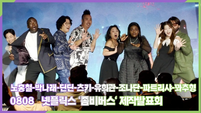 [뉴스인스타 양철수기자] 8월 8일(화) 오전, 서울시 마포구 마포동 호텔 나루 서울 엠갤러리에서 NETFLIX 예능 '좀비버스' 제작발표회가 열려 노홍철, 박나래, 딘딘, 츠키, 유희관, 조나단, 파트리샤, 꽈추형(홍성우)가 참석해 포토타임을 갖고 있다.