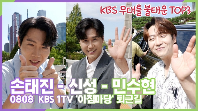 [뉴스인스타 양철수기자] 8월 8일(화) 오전, 서울시 영등포구 여의도 KBS에서 진행된 KBS 1TV '아침마당' 생방송 출연을 마치고 불타는 트롯맨 TOP3 손태진, 신성, 민수현이 방송국을 나서고 있다.