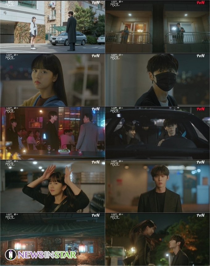 한 발 가까워진 두 사람 앞에 예상치 못한 변수도 찾아왔다. 집 앞 우체통에서 어슬렁거리는 수상한 남자들을 발견한 목솔희는 직감적으로 그들이 ‘작곡가 김도하’를 찾아왔음을 눈치챘다. 그런 와중에 김도하는 마스크도 쓰지 않은 채 경계심 없이 다가오고 있었다. 정체 탄로의 위기에서 목솔희는 “자기”를 외치며 김도하를 향해 달렸다. 사진이 찍힐세라 폴짝 뛰어올라 방패막이 되어준 목솔희. 오직 김도하를 위한 사랑스러운 거짓말은 두근거리는 설렘을 안기며 다음 이야기를 궁금케 했다.