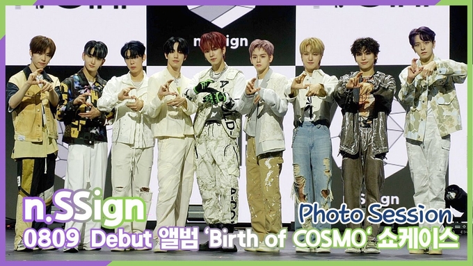 [뉴스인스타 양철수기자] 8월 9일(수) 오후 경기도 광명시 일직동 아이벡스 스튜디오에서 그룹 n.SSign(엔싸인)의 데뷔 앨범 'Birth of COSMO' 발매 기념 쇼케이스가 열려 현, 준혁, 도하, 한준, 희원, 성윤, 카즈타, 로빈, 로렌스, 에디가 참석해 포토타임을 갖고 있다.