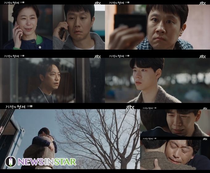 강산은 중태에 빠진 노명남에게 다시 한번 초능력을 발휘, 하늘이 있는 장소를 예상해볼 수 있는 ‘컨테이너’를 봤다. 그리고 노명남의 집 주변을 탐색한 결과, 드디어 하늘의 집을 찾아냈다. 떨리는 손으로 문을 열고 나와 동생을 맞은 하늘, “형”이라 부르며 달려가 하늘에게 안긴 강산, 27년의 세월을 거슬러온 형제의 기적적인 상봉에 안방극장도 감동의 눈물로 젖어들었다. ‘기적의 형제’ 14회는 오늘(10일) 목요일 밤 10시 30분 JTBC에서 방송된다.