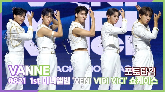 [뉴스인스타 양철수기자] 8월 21일(월) 오후, 서울시 광진구 광장동 예스24라이브홀에서 열린 그룹 '배너(VANNER)'의 첫 번째 미니앨범 '베니 비디 비시(VENI VIDI VICI)' 발매 기념 쇼케이스가 열려 태환, 영광, 곤(GON), 혜성, 성국이 참석해 포토타임을 갖고 있다.