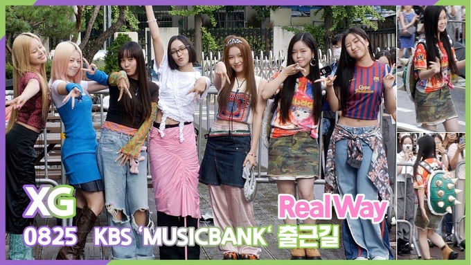 [뉴스인스타 양철수기자] 8월 25일(금) 오전, 서울시 영등포구 여의도 KBS 신관 공개홀에서 진행되는 KBS '뮤직뱅크' 리허설을 위해 그룹 엑스지(XG) 주린, 치사, 히나타, 하비, 쥬리아, 마야, 코코나가 출근해 포토타임을 갖고 있다.