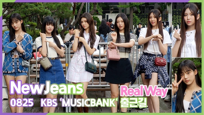 [뉴스인스타 양철수기자] 8월25일(금) 오전, 서울시 영등포구 여의도 KBS 신관 공개홀에서 생방송으로 진행되는 KBS '뮤직뱅크' 출연을 위해 그룹 NewJeans(뉴진스) 민지, 하니, 다니엘, 해린, 혜인이 방송국에 도착해 포즈를 취하고 있다.