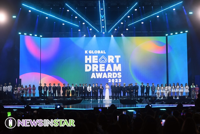 ‘2023 케이 글로벌 하트 드림 어워즈(2023 K 글로벌 하트 드림 어워즈)’는 ‘2030 부산 세계박람회(부산 엑스포)’ 유치를 기원하기 위해 기획된 K팝 최대의 축제로 10일 오후 서울 송파구에 위치한 케이스포돔(KSPO DOME, 구 올림픽체조경기장)에서 열렸다. ‘글로벌 톱 MC’로 통하며 K예능의 인기를 견인 중인 아나운서 출신 방송인 전현무, 코미디언 장도연이 진행을 맡은 가운데, K팝 최전선에서 한류를 이끌고 있는 최정상급 가수들이 대거 참여해 시상식을 빛냈다.