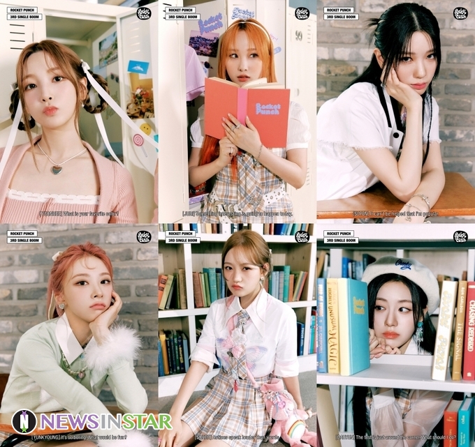 소속사 울림엔터테인먼트는 지난 27일 오후 6시 공식 SNS를 통해 로켓펀치의 세 번째 싱글 '붐(BOOM)' 콘셉트 포토를 공개했다. 공개된 이미지는 교실을 배경으로 각자의 개성이 잘 드러나는 파스텔톤 스쿨룩 스타일링과 함께 사랑스러운 비주얼을 뽐내는 로켓펀치의 모습을 담고 있어 시선을 사로잡았다. 로켓펀치는 책상에 몸을 기대거나 턱을 괴는 등 자연스러운 포즈와 은은한 미소로 글로벌 팬심을 훔쳤다. 함께 공개된 개인 콘셉트 포토에서도 멤버들은 책과 리본 등 다양한 소품을 활용한 포즈와 다채로운 표정 연기로 저마다의 매력을 어필했다. 하이틴 영화의 한 장면을 연상시키는 풋풋한 감성과 생기발랄한 에너지가 보는 이들을 절로 미소 짓게 만들며 컴백의 기대감을 한껏 끌어올렸다.