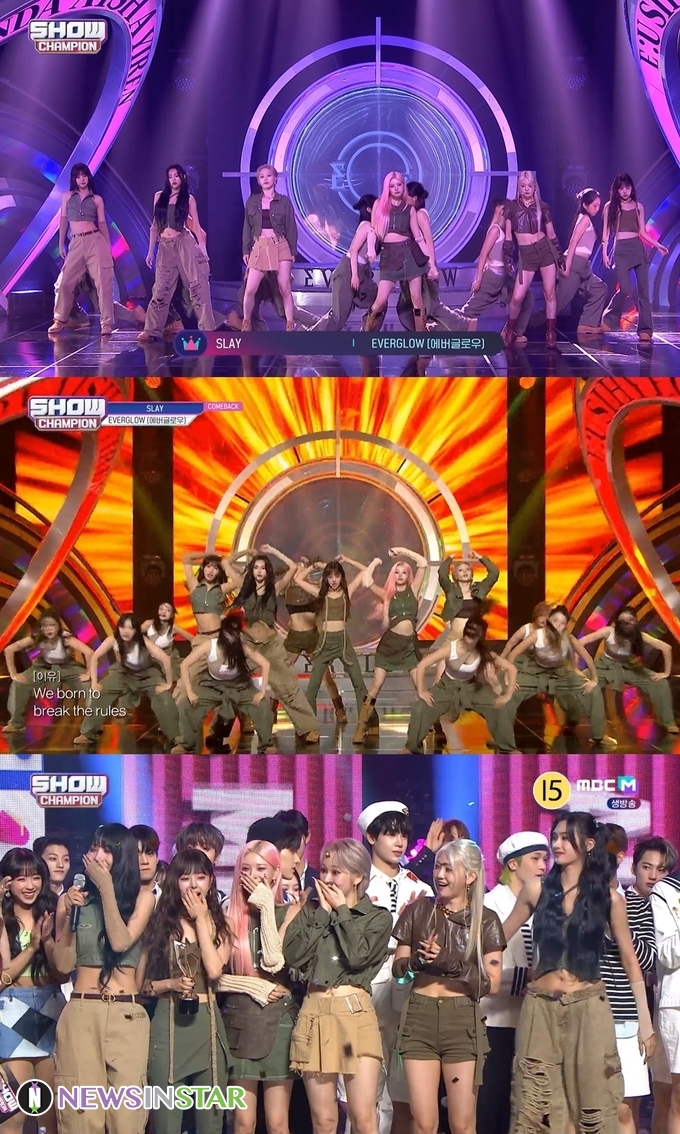 에버글로우(이유, 시현, 미아, 온다, 아샤, 이런)는 지난 30일 방송된 MBC M '쇼! 챔피언'에서 네 번째 싱글 앨범 'ALL MY GIRLS(올 마이 걸스)' 타이틀곡 'SLAY(슬레이)'로 챔피언송을 수상했다.