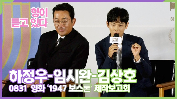 [뉴스인스타 양철수기자] 8월 31일(목) 오전, 서울시 광진구 자양동 롯데시네마 건대입구에서 영화 '1947 보스톤' 제작발표회가 열려 배우 하정우, 임시완, 김상호, 감독 강제규가 참석해 공통 질문에 대해 질의응답을 진행하고 있다.