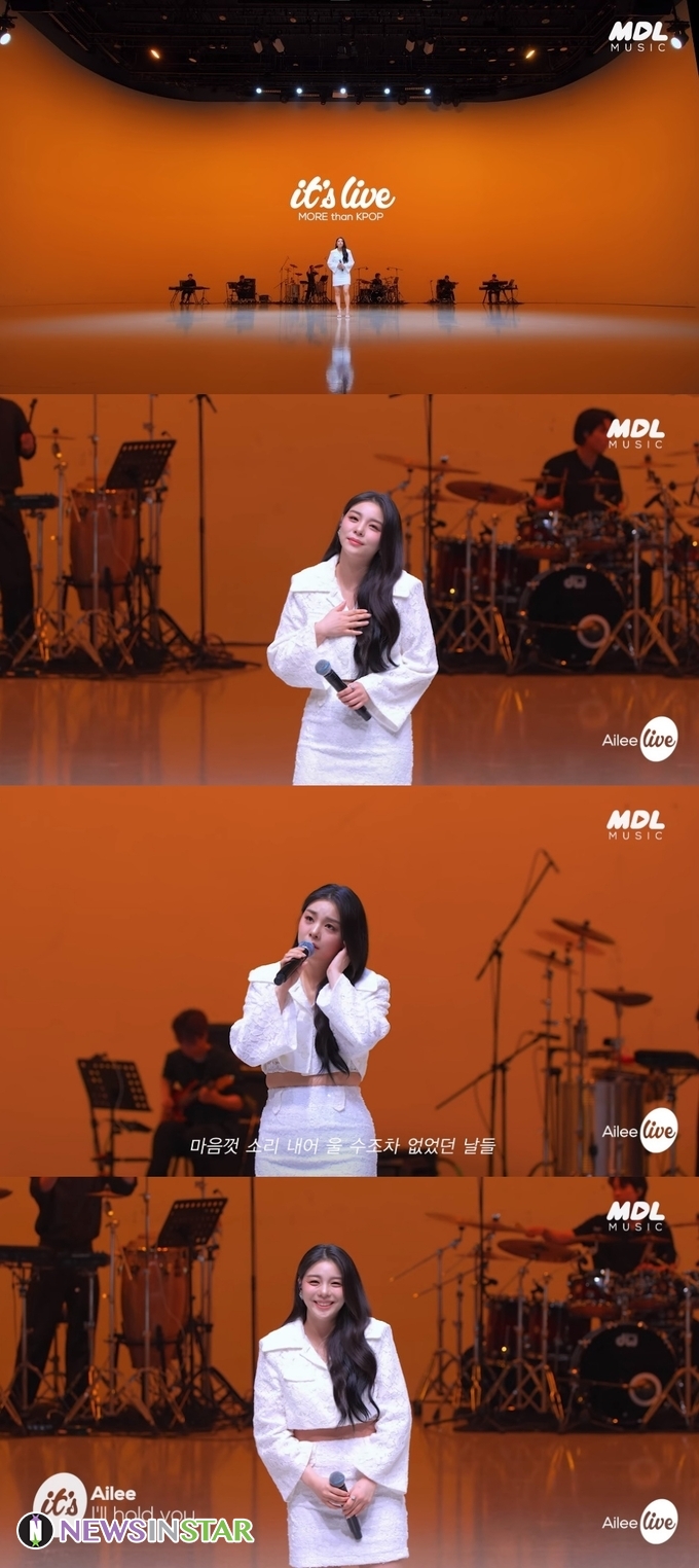 에일리는 지난 1일 오후 6시 'it's Live(잇츠라이브)' 유튜브 채널을 통해 밴드 버전의 '잡아줄게(I'll hold you)' 라이브 무대를 공개했다. '잇츠라이브'를 찾은 에일리는 "나는 힘들고 지칠 때 주변 사람들의 응원을 받고 힘을 많이 내는 편이다. 여러분들도 이 곡을 통해 누군가가 나의 손을 잡아주고 있을 거라는 생각을 꼭 하길 바란다"며 '잡아줄게' 가창을 시작했다.