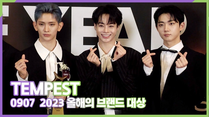 [뉴스인스타 양철수기자] 9월 7일(목) 오전, 서울시 중구 장충동 서울신라호텔에서 2023 올해의 브랜드 대상 시상식이 열려 올해의 남자아이돌(라이징스타) 수상자인 그룹 템페스트(TEMPEST) 한빈, 형섭, 혁, 은찬, LEW, 화랑, 태래가 참석해 포토타임을 갖고 있다.
