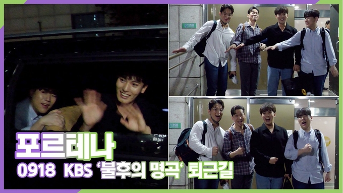 [뉴스인스타 양철수기자] 9월 18일(월) 오후, 서울시 영등포구 여의도 KBS 신관 공개홀에서 진행되는 KBS 2TV '불후의 명곡' 아티스트 '윤형주 - 김세환' 편 녹화를 마치고 크로스오버 그룹 포르테나(Fortena) 이동규(카운터테너), 오스틴킴(콘트랄토), 서영택(레쩨로테너), 김성현(리릭테너)이 퇴근하고 있다.