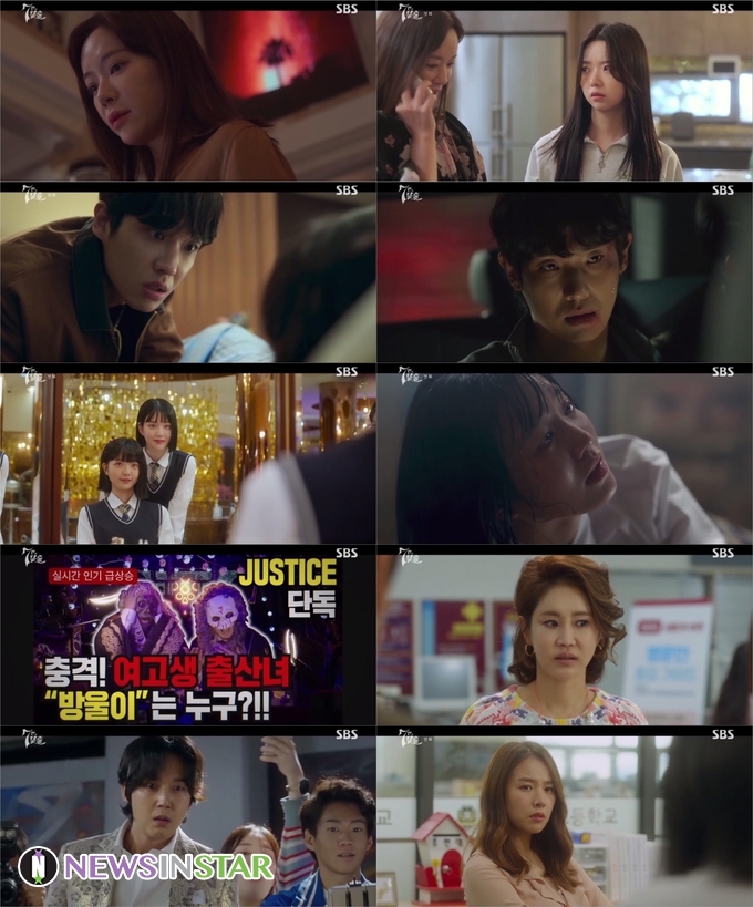 꿈꿨던 미래가 거의 다 왔는데 이대로 무너질 수 없었던 한모네는 양진모를 찾아가 도움을 청했다. 소문의 주인공을 ‘방다미’로만 바꾸면 된다는 것. 양진모는 수하들을 이용해 ‘가짜뉴스’를 확산할 판을 깔았다. 그렇게 탄생한 ‘주홍글씨’ 인터넷 방송의 첫 번째 희생양은 방다미였다. 악인들의 이기심과 욕망이 뒤엉킨 ‘가짜뉴스’는 잔혹했고, 방다미가 나락으로 떨어지는 건 한순간이었다. 진실 따위 상관없는, 세상이 믿고 있는 게 진실이라는 잔혹한 현실에 방다미는 처참하게 무너졌다. 친구라고 믿었던 한모네는 양진모와 손을 잡고 ‘가짜뉴스’를 생성했고, 담임 고명지(조윤희 분)는 자신의 불륜 사실을 알고 있는 방다미가 사라지길 바라는 마음에 자신이 목격자라고 거짓말했다. 금라희가 눈엣가시였던 차주란(신은경 분)은 방다미가 임신한 게 맞다며 진실을 외면했다. 그렇게 방다미는 ‘미술실 출산녀’가 됐다. 그리고 ‘주홍글씨’의 만행도 끝이 없었다. 양부가 방울이의 남자라고 선동까지 한 것. 그런 가운데 의문의 총소리와 핏자국 옆에 떨어진 방울모자는 방다미에게 찾아온 비극을 암시했다. 몰려드는 사람들 사이 이를 지켜보는 금라희, 한모네, 차주란, 양진모, 고명지의 기묘한 얼굴은 파국의 시작을 알리며 긴장감을 고조시켰다.