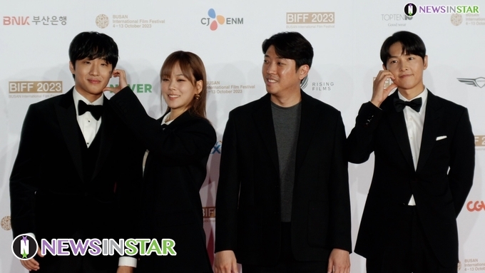 [부산 - 뉴스인스타 양철수기자] 10월 4일(수) 오후, 부산광역시 해운대구 영화의 전당에서 ‘제28회 부산국제영화제’ 개막식 식전 행사로 진행된 레드카펫에 영화 '화란'의 배우 송중기-홍사빈-김형서가 참석해 자리를 빛냈다.
