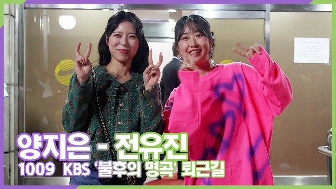[뉴스인스타 양철수기자] 10월 9일(월) 오후, 서울시 영등포구 여의도 KBS 신관 공개홀에서 진행된 KBS 2TV '불후의 명곡' 녹화를 마치고 미스트롯2 진 양지은, 전유진이 방송국에 나서며 포즈를 취하고 있다.