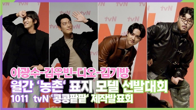 [뉴스인스타 양철수기자] 10월 11일(수) 오후, 서울시 강남구 엘리에나 호텔에서 tvN 새 예능 '콩 심은데 콩나고 팥 심은데 팥난다(콩콩팥팥)' 제작발표회가 열려 이광수, 김우빈, 디오, 김기방, 나영석 PD, 하무성 PD가 참석해 포토타임을 갖고 있다.