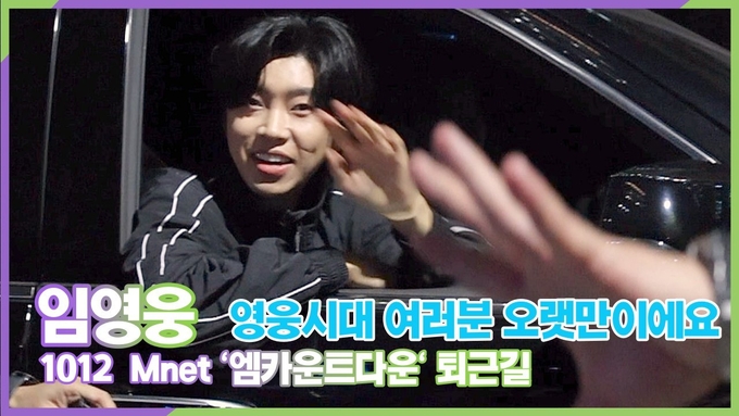 [뉴스인스타 양철수기자] 10월 12일(목) 오후, 서울시 마포구 상암동 CJENM에서 Mnet '엠카운트다운' 출연을 마치고 임영웅이 퇴근길에 팬들에게 인사를 하고 있다.
