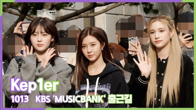 [뉴스인스타 양철수기자] 10월 13일(금) 오후, 서울시 영등포구 여의도 KBS 신관 공개홀에서 진행되는 KBS '뮤직뱅크' 생방송 출연을 위해 그룹 Kep1er(케플러) 김채현, 휴닝바히에, 최유진, 김다연, 서영은, 예서, 에자키 히카루, 사카모토 마시로, 션샤오팅이 방송국에 도착해 포즈를 취하고 있다.