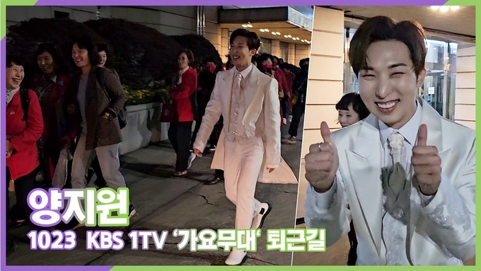 [뉴스인스타 양철수기자] 10월 23일(월) 오후, 서울시 영등포구 여의도 KBS 별관에서 진행된 KBS 1TV ‘가요무대' 녹화를 마치고 트롯 가수 양지원이 방송국을 나서며 팬들과 인사를 하고 있다.