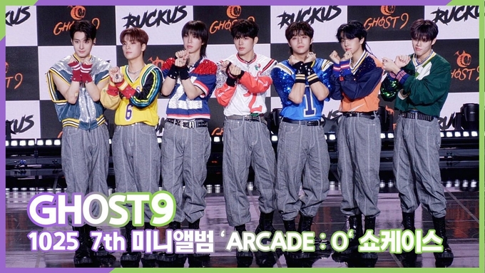 [뉴스인스타 양철수기자] 10월 25일(수) 오후, 서울시 강남구 청담동 일지아트홀에서 그룹 고스트나인(GHOST9)의 일곱번째 미니앨범 '아케이드 : 오'(ARCADE : O) 발매 기념 미디어 쇼케이스가 열려 손준형, 이신, 최준성, 이강성, 프린스, 이우진, 이진우가 참석해 포토타임을 갖고 있다.