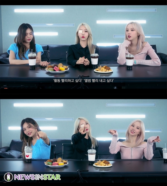 특히 이번 컴백을 준비하면서 느낀 성장한 지점을 짚어 눈길을 끌었다. 엄지는 “셋이 곡을 채우면서 합이 많이 맞춰진 것 같다. 각자 어느 파트를 하면 잘 어울리겠다는 걸 안다”라고 밝혔고, 신비는 “팝스러운 곡에 어떻게 목소리를 써야 잘 스며드는지 알게 됐다”라며 공감했다.