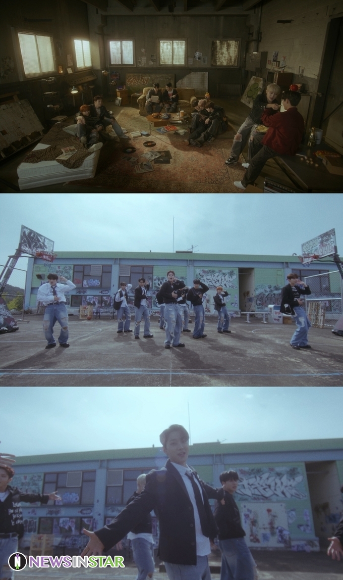 이어 따스한 햇살이 쏟아지는 옥상으로 화면이 전환되고, 셔츠와 재킷 등 각자의 개성을 살린 상의에 찢어진 청바지를 매치한 캐주얼한 스타일링과 함께 '필 미'의 안무를 선보이는 멤버들의 모습이 흘러나와 더욱 뜨거운 반응을 불러왔다.