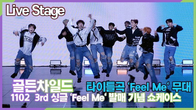 [뉴스인스타 양철수기자] 11월 2일(목) 오후, 서울시 강남구 논현동 일지아트홀에서 그룹 골든차일드(Goldel Child)의 세번째 싱글앨범 'Feel Me' 발매 기념 쇼케이스가 열려 이대열, 이장준, 태그, 배승민, 봉재현, 김지범, 김동현, 홍주찬, 최보민이 참석해 타이틀곡 무대를 선보이고 있다.