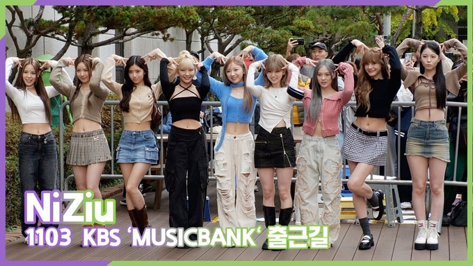 [뉴스인스타 양철수기자] 11월 3일(금) 오전, 서울시 영등포구 여의도 KBS 신관 공개홀에서 생방송으로 진행되는 KBS '뮤직뱅크' 리허설에 참석하기 위해 그룹 니쥬(NiZiu ニジュー) 니나 · 마야 · 리오 · 미이히 · 리마 · 마코 · 아야카 · 마유카 · 리쿠가 방송국에 도착해 포즈를 취하고 있다.