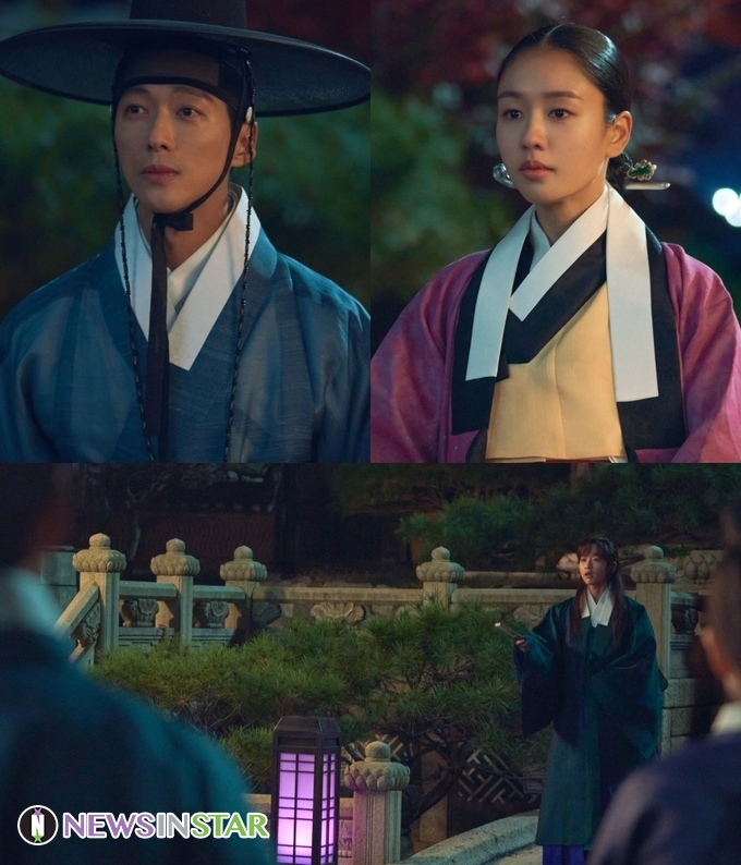 이런 가운데 11월 4일 ‘연인’ 제작진이 보기만 해도 심장이 두근두근 뛰는 이장현과 유길채의 모습을 공개했다. 사진 속 이장현과 유길채는 어둠이 내린 저녁, 나란히 서서 무언가를 바라보고 있다. 두 사람의 시선이 닿은 곳에는 조선 최고의 명창 량음(김윤우 분)이 노래를 부르고 있다.