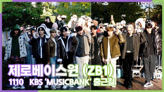 [뉴스인스타 양철수기자] 11월 3일(금) 오전, 서울시 영등포구 여의도 KBS 신관 공개홀에서 생방송으로 진행되는 KBS '뮤직뱅크' 리허설에 참석하기 위해 그룹 제로베이스원(ZB1) 성한빈, 김지웅, 장하오, 석매튜, 김태래, 리키, 김규빈, 박건욱, 한유진이 방송국에 도착해 포즈를 취하고 있다.