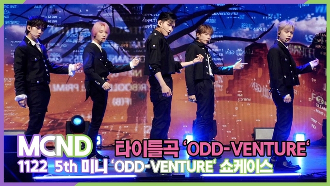 [뉴스인스타 양철수기자] 11월 22일(수) 오후, 서울시 마포구 서교동 신한Play 스퀘어에서 그룹 MCND의 다섯번째 미니앨범 'ODD-VENTURE(오드벤처)' 발매 기념 미디어 쇼케이스가 열려 캐슬제이, 빅, 민재, 휘준, 윈이 참석해 타이틀곡 무대를 선보이고 있다.