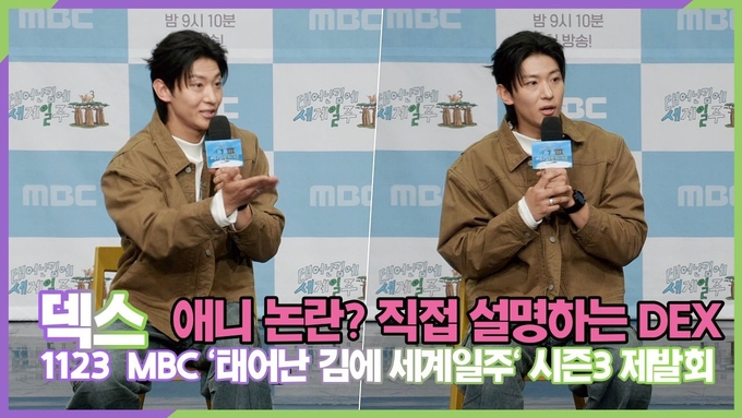 [뉴스인스타 양철수기자] 11월 23일(목) 오후, 서울시 마포구 상암동 MBC 방송센터에서 MBC 예능 프로그램 '태어난 김에 세계일주' 시즌3(이하 '태계일주3') 제작발표회가 열려 기안84, 덱스가 참석해 공동 인터뷰를 진행하고 있다.