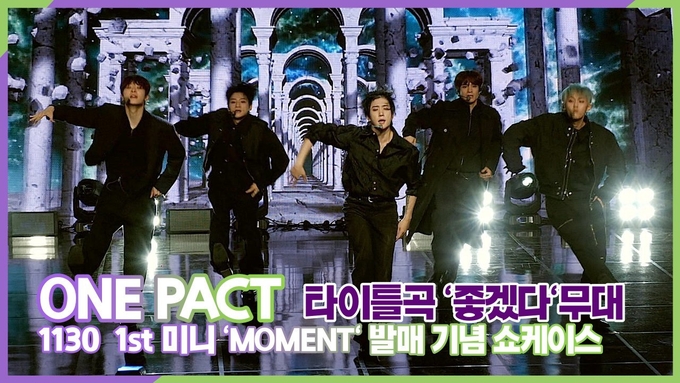 [뉴스인스타 양철수기자] 11월 30일(목) 오후, 사울시 강남구 청담동 일지아트홀에서 그룹 원팩트(ONE PACT) 첫번째 미니앨범 'MOMENT' 발매 기념 미디어 쇼케이스가 열려 종우, 성민, 태그, 예담, 제이창이 참석해 타이틀곡 무대를 선보이고 있다.