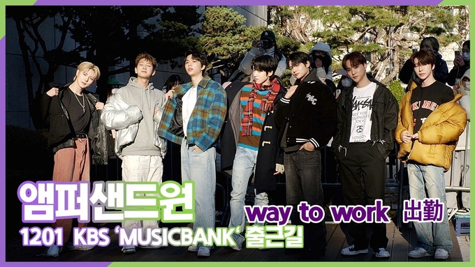 [뉴스인스타 양철수기자] 12월 1일(금) 오전, 서울시 영등포구 여의도 KBS 신관 공개홀에서 생방송으로 진행되는 KBS '뮤직뱅크' 리허설에 참석하기 위해 그룹 앰퍼샌드원(AMPERS&ONE) 나캠든, 브라이언, 최지호, 윤시윤, 카이렐, 마카야, 김승모가 방송국에 도착해 포즈를 취하고 있다.