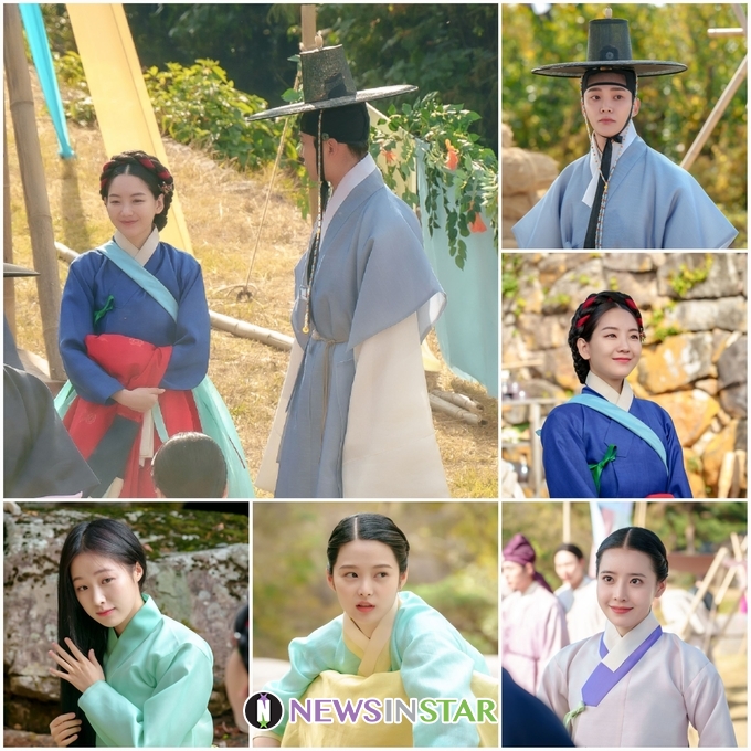 로운-조이현-정신혜-박지원-정보민이 활약한 ‘납채 받기 대작전’은 ‘축제의 장’ 같은 분위기에서 촬영됐다. 다섯 배우들이 평소 잘해보지 못했던 단오의 전통 풍습을 체험하는 촬영에 어린아이처럼 즐거워하며 웃음꽃을 피웠던 것. 로운과 조이현은 장면 속에서 표현해야 할 심정우와 정순덕의 감정에 대해 의견을 나누며 짧은 장면에서도 알찬 감정을 내비치려 노력했고, 정신혜-박지원-정보민은 단아한 매력을 뿜어내며 스태프들에게 “예쁘다”, “아름답다”라는 폭발적인 호응을 얻었다.