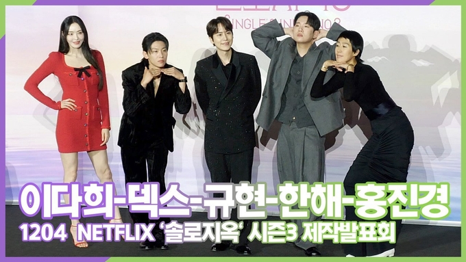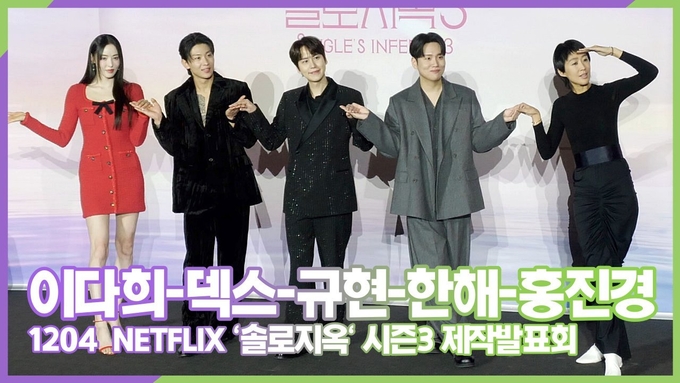 [뉴스인스타 양철수기자] 12월 4일(월) 오전, 서울시 용산구 CGV 용산아이파크몰에서 NETFLIX 예능 '솔로지옥' 시즌3 제작발표회가 열려 홍진경, 이다희, 규현, 한해, 덱스가 포토타임을 갖고 있다.