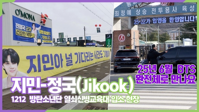 [경기도 연천 / 뉴스인스타 양철수기자] 12월 12일(화) 오후, 경기도 연천군 청산면 열쇠신병교육대에 방탄소년단(BTS) 지민과 정국이 동반 입대했다. 두 사람은 이곳에서 기초 군사 훈련을 받은 후, 육군 현역으로 군 복무를 시작해 오는 2025년 6월 11일 전역 예정이다.