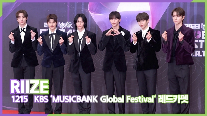 [뉴스인스타 양철수기자] 12월 15일(금) 오후, 서울시 영등포구 여의도 KBS 홀에서 2023 KBS 'MUSICBANK GLOBAL FESTIVAL' 식전 행사인 레드카펫이 진행돼 룹 RIIZE(라이즈) 성찬, 승한, 원빈, 앤톤, 소희, 쇼타로, 은석이 포토타임을 갖고 있다.